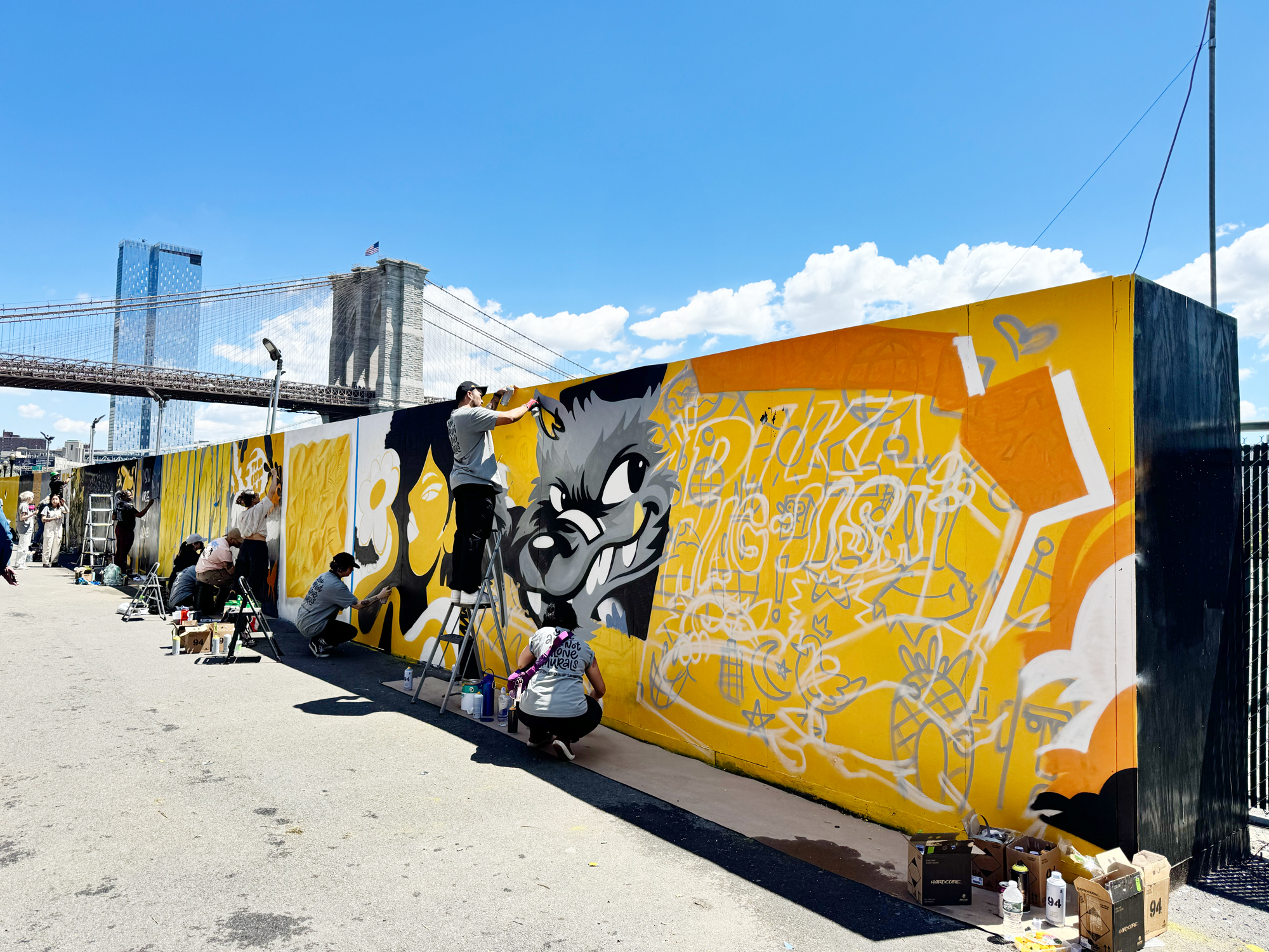 Walk north along the East River Esplanade from the Tin Building to see all the murals from Seaport MuralFest up close.